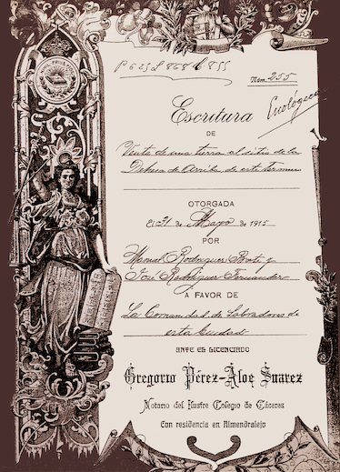 Con la colaboración de la “Comunidad de Labradores de Almendralejo”, que realiza las gestiones para la compra de unos terrenos que posteriormente se cederán para la construcción de edificio, y de la Caja Rural de Almendralejo, que dona un dinero para comenzar las obras, se termina su construcción en torno a 1.920.